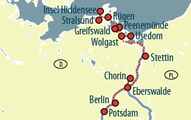 Diese Flusskreuzfahrt führt Sie von Potsdam, über Berlin, Stettin, den Inseln Usedom und Rügen bis nach Stralsund. Alle Landausflüge (außer Stettin) werden mit dem IMKEN-Bus durchgeführt!