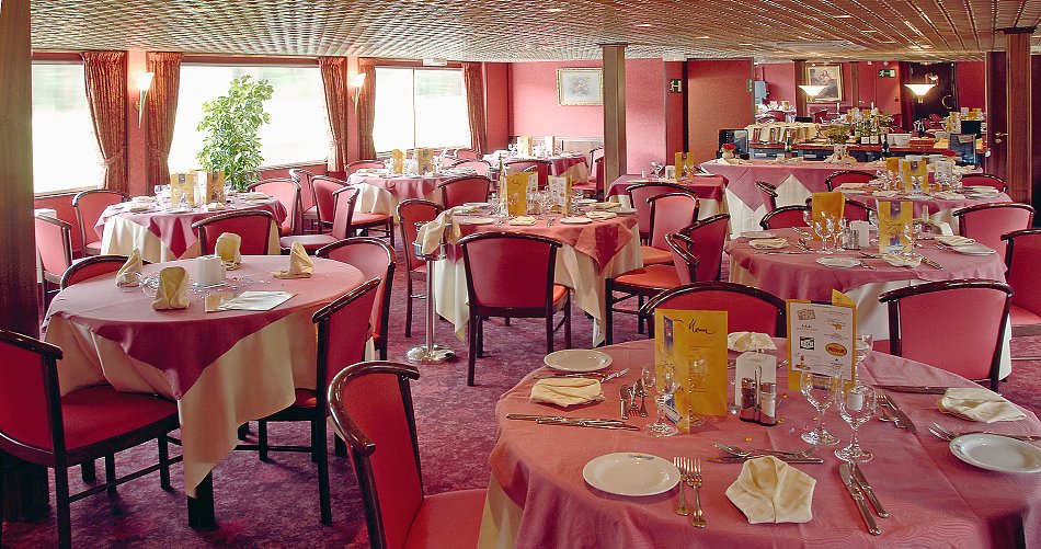 Auf dem MS MONA LISA erwartet Sie eine komfortable und behagliche Ausstattung mit Salon, Bar und Restaurant. WiFi an Bord. Die klimatisierten Außenkabinen sind ca. 10 m² groß und verfügen über 2 untere Betten, Dusche/WC, Föhn, Fernseher und Safe. Auf dem Sonnendeck stehen Liegestühle zur Verfügung. Bordsprachen: Deutsch, Französisch.