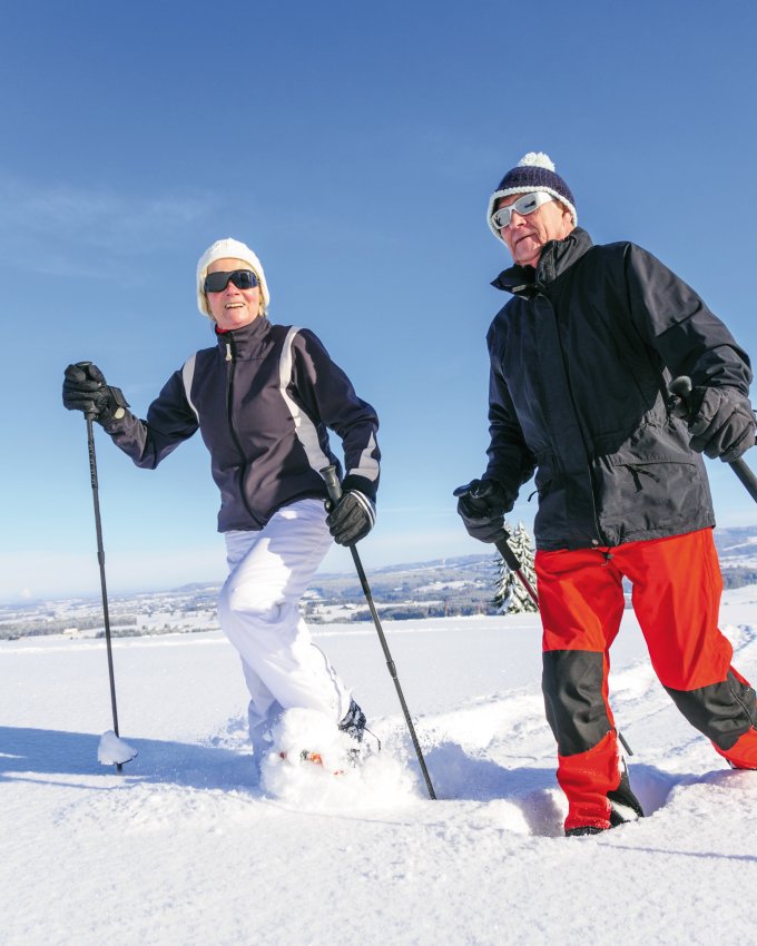 Schneeschuhwanderung: Mit einem Wanderführer unternehmen Sie eine Winterwanderung durch die verschneite norwegische Landschaft. Dabei verleihen Ihnen die Schneeschuhe Stabilität und Sicherheit. (Schneeschuhe und Skistöcke werden gestellt, eigene Winterstiefel und Handschuhe benötigt.)