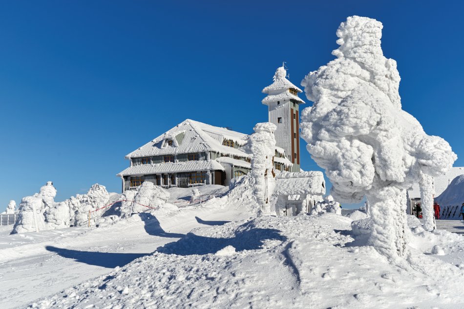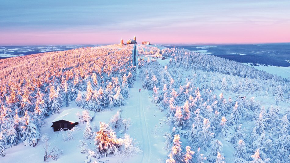 Am Nachmittag fahren Sie weiter in den Wintersportort Oberwiesenthal. Dort erwartet Sie ein weiteres Highlight: die Fahrt mit der Schwebebahn auf den verschneiten Fichtelberg – ein traumhafter Ausblick erwartet Sie.