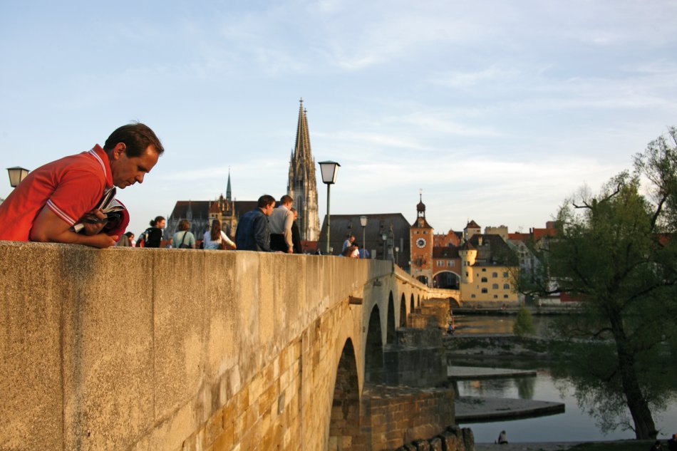 Die heutige Etappe führt nach Regensburg. Diese Stadt erwartet Sie mit vielen mittelalterlichen Gebäuden, der ältesten Brücke über die Donau und dem imposanten Dom.