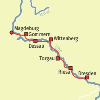 Soll Ihr nächster Radurlaub ein ganz besonderes Erlebnis werden? Dann begeben Sie sich mit uns auf die Reise von Dresden nach Magdeburg. Städte wie Meißen, Torgau und, nicht zu vergessen, die Lutherstadt Wittenberg, begleiten Ihre Reise entlang der Elbe.
