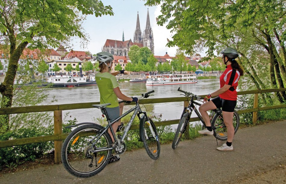 Sie verlassen Regensburg mit der mittelalterlichen Altstadt und fahren auf dem Donauradweg direkt am Fluss entlang bis nach Bad Abbach und weiter zum heutigen Tagesziel, der Wittelsbacherstadt Kelheim mit der berühmten Befreiungshalle.
