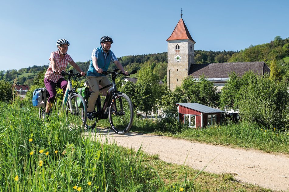 Von Kallmünz aus radeln Sie durch das Naabtal. Auf dem Weg nach Regensburg lädt Pielenhofen mit seinem barocken Kloster zu einer Verschnaufpause ein. Von Mariaort und der Wallfahrtskirche aus können Sie bei guter Sicht bereits die Türme des Regensburger Doms erkennen.