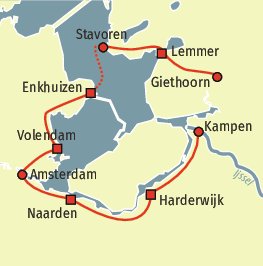 Genießen Sie bei dieser Radtour die unbeschreibliche Ruhe des Ijsselmeers. Alte holländische und friesische Dörfer und Städte erwarten Sie. Radeln Sie entlang grüner Wälder und Polderlandschaften und genießen Sie die fantastischen Aussichten über das Wasser.