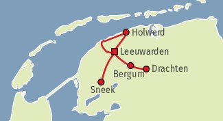 Unser Fahrradbus bringt Sie nach Sneek in Friesland. Von hier aus radeln Sie durch herrliche Landschaften. In Leeuwarden finden Sie historische Straßenzüge und den schiefen Kirchturm De Oldehove.