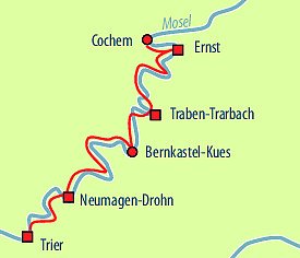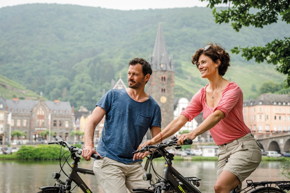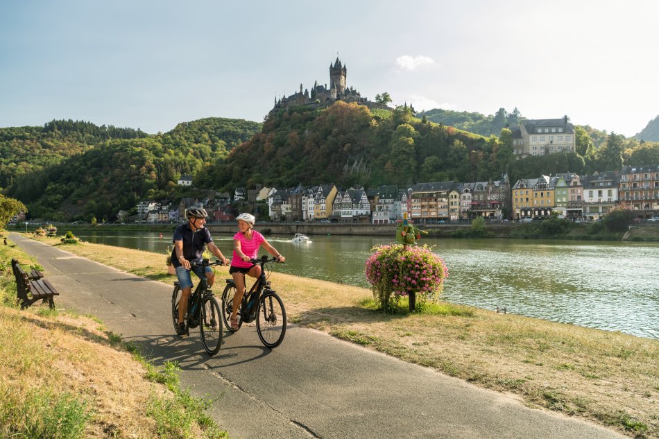 Hinter jeder Flussbiegung wartet ein neuer Ausblick auf eine bezaubernde Landschaft voller Ruhe und Schönheit. Prachtvolle Burgen, Schlösser und Klöster sowie die eigenwilligen Schleifen des Flusses machen die Radtour entlang der Mosel zu einer der abwechslungsreichsten und herrlichsten Strecken Europas.
