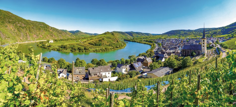 Genießen Sie auf dem heutigen Weg noch einmal das Naturschauspiel der immer enger werdenden Schleifen der Mosel. Sie passieren kleine und romantische Orte wie Enkirch mit moselländischer Fachwerkarchitektur oder Beilstein, einer der schönsten Orte an der Mosel.