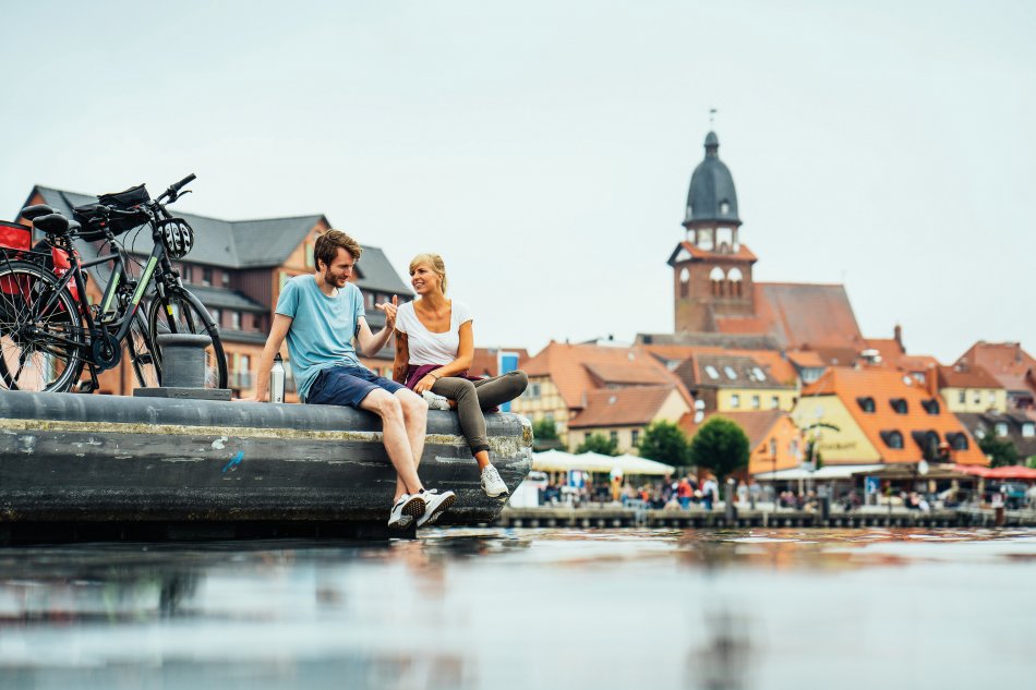 Mit dem Fahrradbus reisen Sie nach Waren - der Perle an der Müritz. In der historischen Altstadt können Sie liebevoll restaurierte Fachwerkhäuser bestaunen und in gemütlichen Cafés und Restaurants verweilen. Ein herrlicher Blick über die Stadt bietet sich vom Turm der Kirche St. Marien und am Hafen können Sie den Tag entspannt ausklingen lassen.