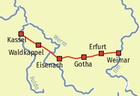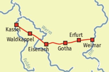 Eindrucksvolle Flusslandschaften, romantische Fachwerkstädte, kulturelles Angebot ... diese Reise verspricht erlebnisreiche Tage und verbindet mit den Kulturstädten Kassel, Eisenach, Weimar und Erfurt gleich mehrere Highlights.