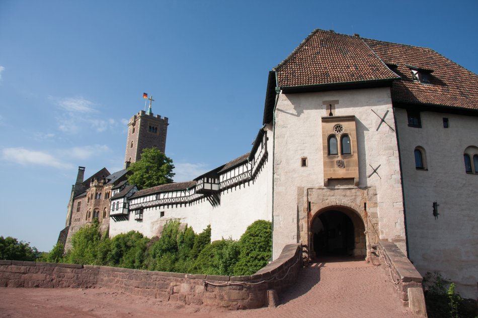 Entlang der Wehre fahren Sie nach Wichmannshausen und weiter durch die idyllische Landschaft des Ringgaus zwischen Meißner und dem Thüringer Wald. In Creuzburg treffen Sie auf die Werra und fahren nun in die Wartburgstadt Eisenach. Die Burg zählt zum UNESCO-Weltkulturerbe.