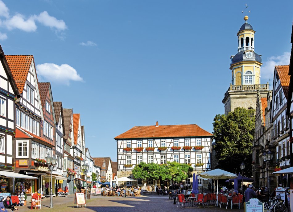 Sie verlassen die Heimat des sagenumwobenen Barons Münchhausen. Eine erste Pause sollten Sie in der Rattenfängerstadt Hameln einplanen, bevor Sie der Radroute bis in die alte Festungsstadt Rinteln weiter folgen. Enge Gassen, malerische Winkel und ein historischer Marktplatz erwarten Sie in der über 750 Jahre alten Stadt.