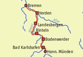In sechs sportlichen Etappen erfahren Sie den Weserradweg mit seinen unterschiedlichen Facetten und erleben die landschaftliche Abwechslung der Regionen vom Weserbergland bis in die Hansestadt Bremen.
