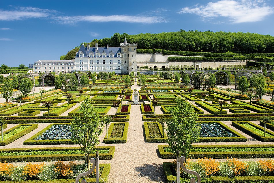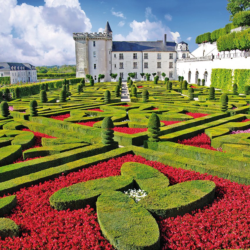 Die einzigen rekonstruierten Renaissancegärten Frankreichs sehen Sie in Villandry. Ein Kunstwerk auf drei Ebenen mit Gewürz-, Musik- und Liebesgarten!