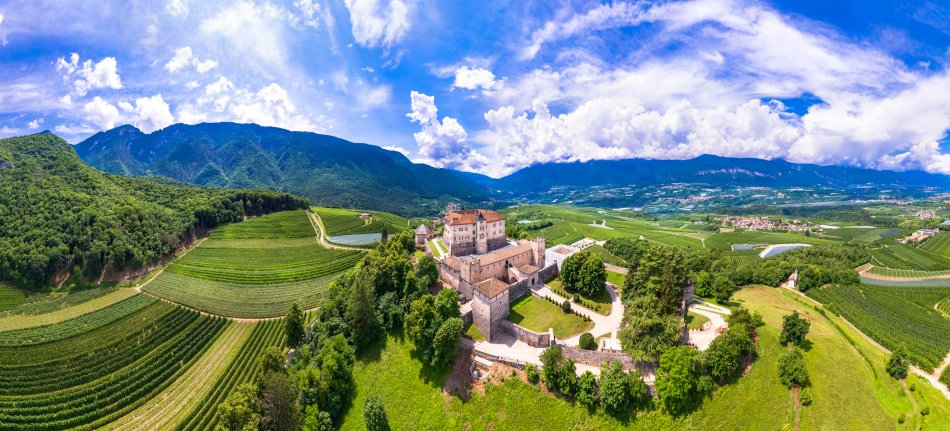 Durch Alpentäler und vorbei an Apfelplantagen und Weinbergen geht es nach Trient. Die Reiseleitung zeigt Ihnen die historische Altstadt. Auf dem Weg zum Schloss Thun besuchen Sie ein Weingut und sind dort zu einer Weinprobe eingeladen. Anschließend geht es weiter über die Apfelstraße zum Schloss Thun. Der auf einer Anhöhe thronende imposante Palazzo bietet einen herrlichen Blick über das Tal.