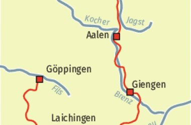 Sie starten in Crailsheim. Die Route führt Sie durch das ländliche Jagsttal, das immer wieder Blicke auf Burgen und Schlösser frei gibt bis nach Ellwangen. Ein kurzer Stopp und weiter radeln Sie bis zu Ihrem heutigen Etappenziel nach Aalen. Traumhafte Ausblicke warten in Aalen, wie z. B. der Aalbäumle. Aalen hat noch einiges mehr zu bieten, wie z. B. das Schloss und das römische UNESCO-Welterbe Limes.