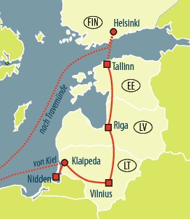 Entdecken Sie mit uns das Baltikum! Litauen, Lettland und Estland sind lebendig, liebenswert und auffallend unterschiedlich. Auf Hin- und Rückfahrt reisen Sie äußerst bequem mit Nachtfähren.