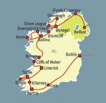 Folgen Sie dem Wild Atlantic Way durch die wilde Küstenlandschaft Irlands. Auf Ihrem Weg passieren Sie dabei einsame, zerklüftete Landschaften, dramatische Küstenlinien und verborgene Inseln.