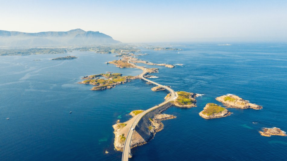 Sie reisen nach Molde, die„Stadt der Rosen“. Anschließend fahren Sie über die schönste Panoramastraße Norwegens, die Atlantikstraße, bis nach Kristiansund.