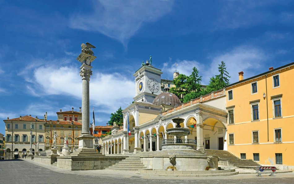 Udine, die Hauptstadt des Friauls, besticht mit einem malerischen historischen Zentrum, dessen Herz die Piazza della Libertà ist, mit Rathaus und venezianischem Löwen.
