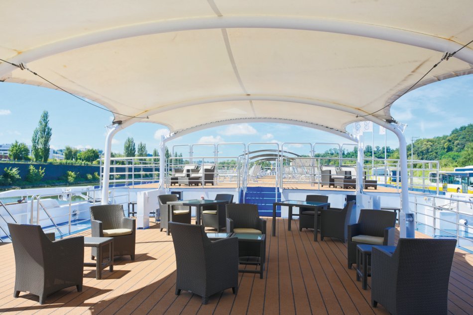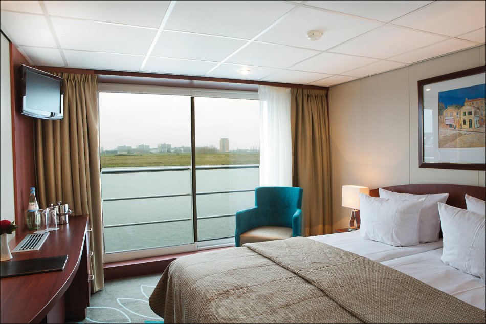 Oberdeck: 2-Bett-Kabine, franz. Balkon, bodentiefe Fenster, zu öffnen.