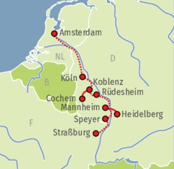 Auf dieser faszinierenden Flusskreuzfahrt reisen Sie von Straßburg bis Amsterdam durch das romantische Rheintal.