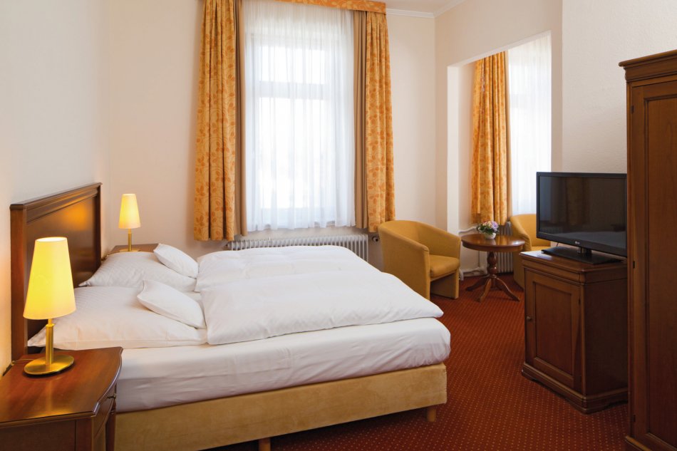 Sie wohnen im familiengeführten 4-Sterne-superior Hotel Waldschlösschen und Dependance, ruhig gelegen am Ortsrand von Schleswig. Die Zimmer sind modern eingerichtet und mit Dusche oder Bad, WC, Föhn, Telefon, TV, Minibar, Zimmersafe und gratis WLAN ausgestattet. Lift im Hauptgebäude vorhanden. Kostenfrei nutzen können Sie den schönen Wellnessbereich„GartenSpa“ mit Schwimmbad, Saunawelt und Hot-Whirlpool und großem Wellnessgarten.